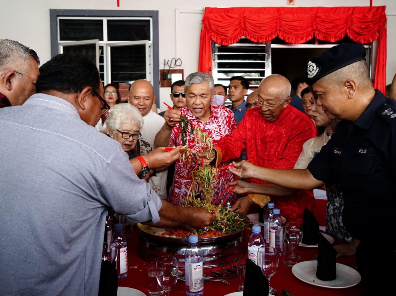 Ahmad Zahid turut bersama-sama keluarga Song Wan menggaul Yee Sang serta meluangkan masa bersembang dengan kenalannya itu sambil menikmati juadah makanan disediakan.