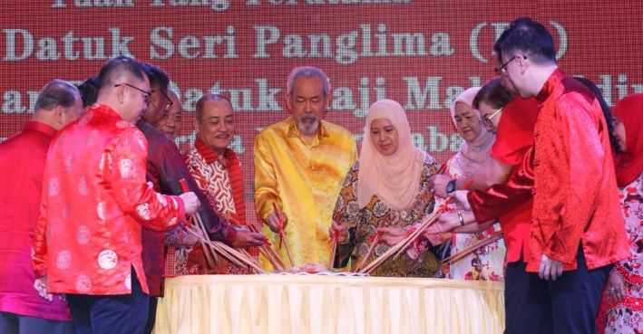 Majlis yang dihadiri Tun Juhar dan isteri Toh Puan Norlidah RM Jasni itu adalah anjuran bersama kerajaan negeri Sabah dan Gabungan Persatuan Cina Sabah (FCAS).