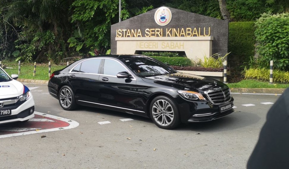Kenderaan membawa Hajiji memasuki pintu masuk Istana Seri Kinabalu pada pukul 9.35 pagi.