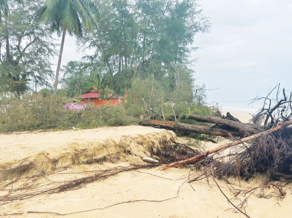 PASIR PUTEH: Fenomena air laut pasang besar menyebabkan berlakunya hakisan sekali gus ‘mencacatkan’ keindahan Pantai Bisikan Bayu Semerak sebagai salah satu tarikan pelancongan di negeri ini.