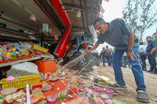 MELAKA: Seorang peniaga belacan di Kampung Pinang Batang Tiga, Lereh di sini terpaksa berputih mata menanggung kerugian hampir RM20,000 selepas gerainya musnah dirempuh sebuah kereta, kelmarin.