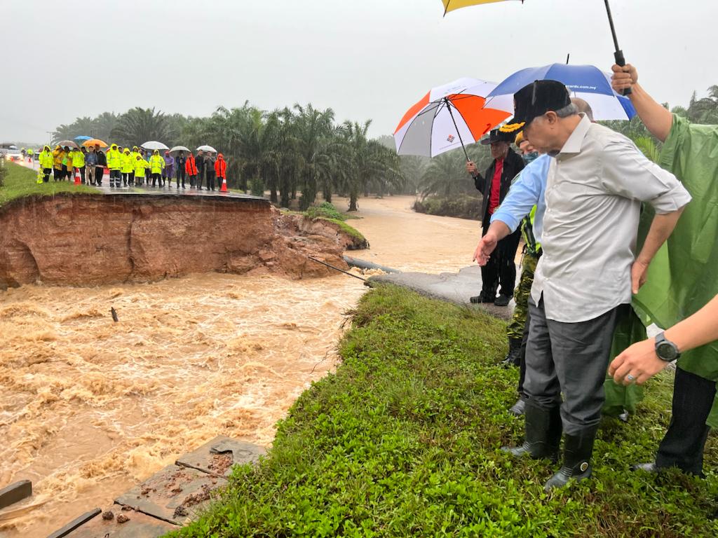 “Saya bersama Ketua Pengarah Nadma dan Ketua Pesuruhjaya Angkatan Pertahana Awam Malaysia (APM) terus ke Rompin bagi meninjau keadaan jalan utama ke Segamat telah terputus sepenuhnya. Sebagai Pengerusi Jawatankuasa Pengurusan Bencana Pusat, saya telah mengarahkan Ketua Pengarah Nadma bagi menyediakan peruntukan dan menghubungi Panglima Tentera Darat untuk menghantar Kor Jurutera Diraja Tentera Darat ke tempat kejadian dan segera membina jambatan Bailey bagi menghubungkan laluan jalan yang terputus dalam tempoh jangkaan siap antara 48 hingga 72 jam,” katanya dalam kenyataan selepas meninjau keadaan jalan yang terputus hubungan terbabit, di Felda Selancar hari ini.