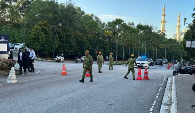 Persekitaran mahkamah dikawal ketat Polis Diraja Malaysia (PDRM), dan masih tenang setakat pukul 8 pagi.