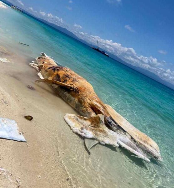 KOTA KINABALU: Penduduk Pulau Mantanani, Kota Belud dikejutkan dengan penemuan bangkai ikan paus yang terdampar di pesisiran pantai pulau tersebut hari ini.