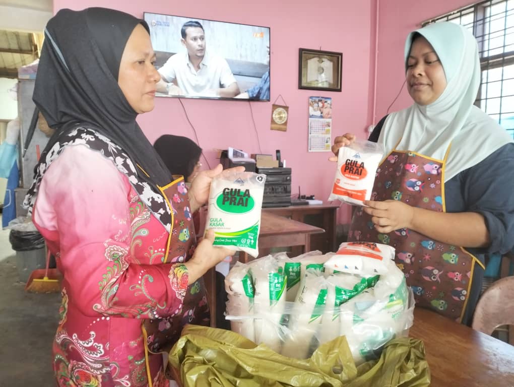 Bagi peniaga kuih di Kampung Jubakar Pantai, Sarinah Mohd Zain, 56, dia membeli gula timbang di dalam guni yang beratnya 50 kg di Kota Bharu pada harga RM180 memandangkan semua kedai di daerah ini terputus bekalan.
