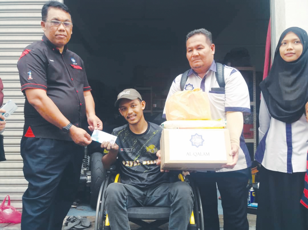 Terdahulu, dia yang berkerusi roda disantuni Presiden Pertubuhan Sentuhan Kasih Al-Qalam (Al-Qalam), Datuk Seri Dr. Baharudin Abu yang menyalurkan sumbangan barangan keperluan.
