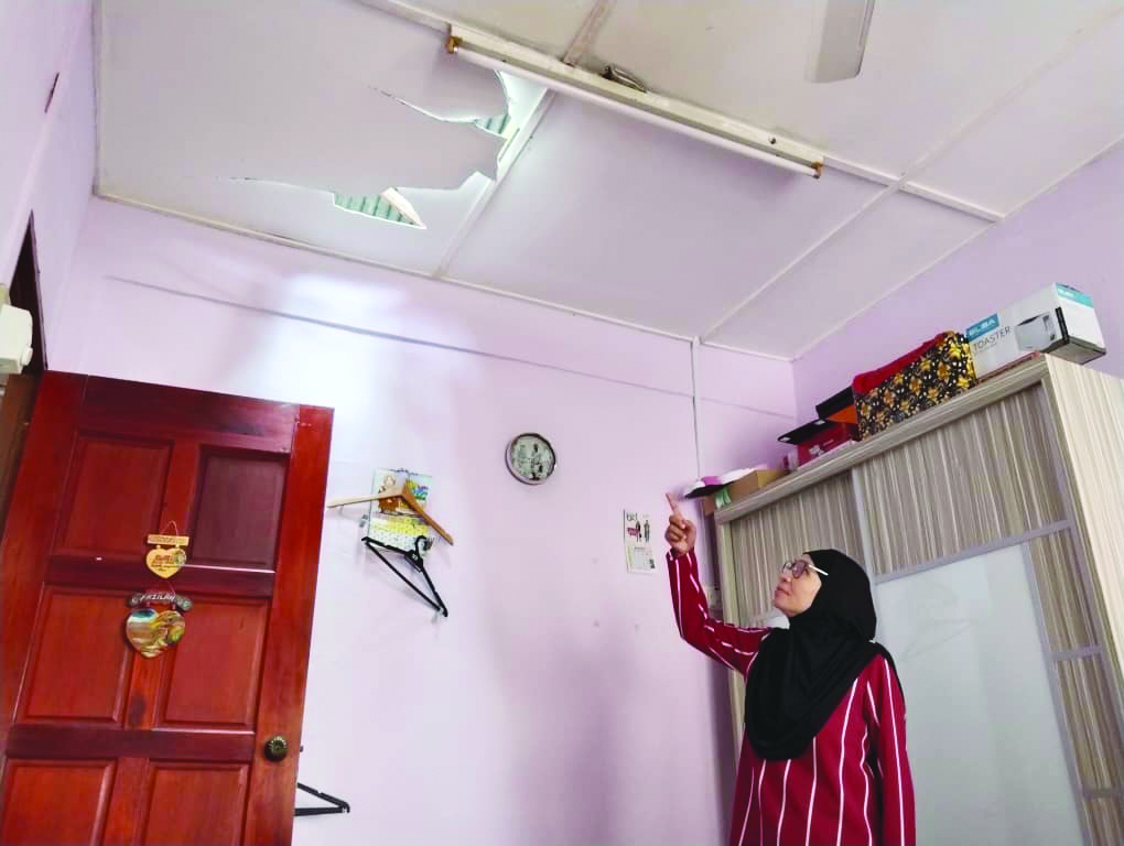 “Saya bergegas pulang selepas kakak memaklumkan bumbung rumah saya turut rosak. Mujur rumah saya tak seteruk rumah kakak. Namun kerosakan ini perlu dibaiki segera,” katanya. – UTUSAN