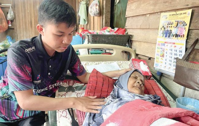 GUA MUSANG: Seorang anak yatim yang memperoleh 7A dalam Sijil Pelajaran Malaysia (SPM) cekal menguruskan neneknya terlantar akibat penyakit kencing manis, darah tinggi dan buah pinggang di Rancangan Pemulihan Tanah (RPT) Kesedar Sungai Terah di sini. Ahmad Sharimie Hasani, 18, berkata, neneknya Hamisah Long, 80, mula terlantar sejak tahun lalu akibat sekali gus memerlukan penjagaan rapi apabila hilang upaya untuk bergerak. Menurutnya, tugas menjaga neneknya itu akan digalas penuh selepas…