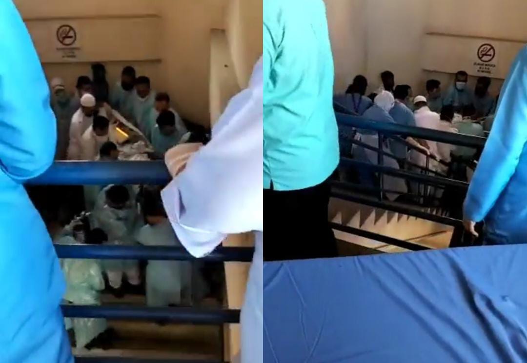 “Hospital Melaka mengesahkan situasi tersebut berlaku, ia adalah proses memindahkan pesakit yang berada di wad aras empat kepada aras tiga dengan menggunakan tangga kerana berlaku situasi luar jangka gangguan perkhidmatan lif di Blok F Hospital Melaka.