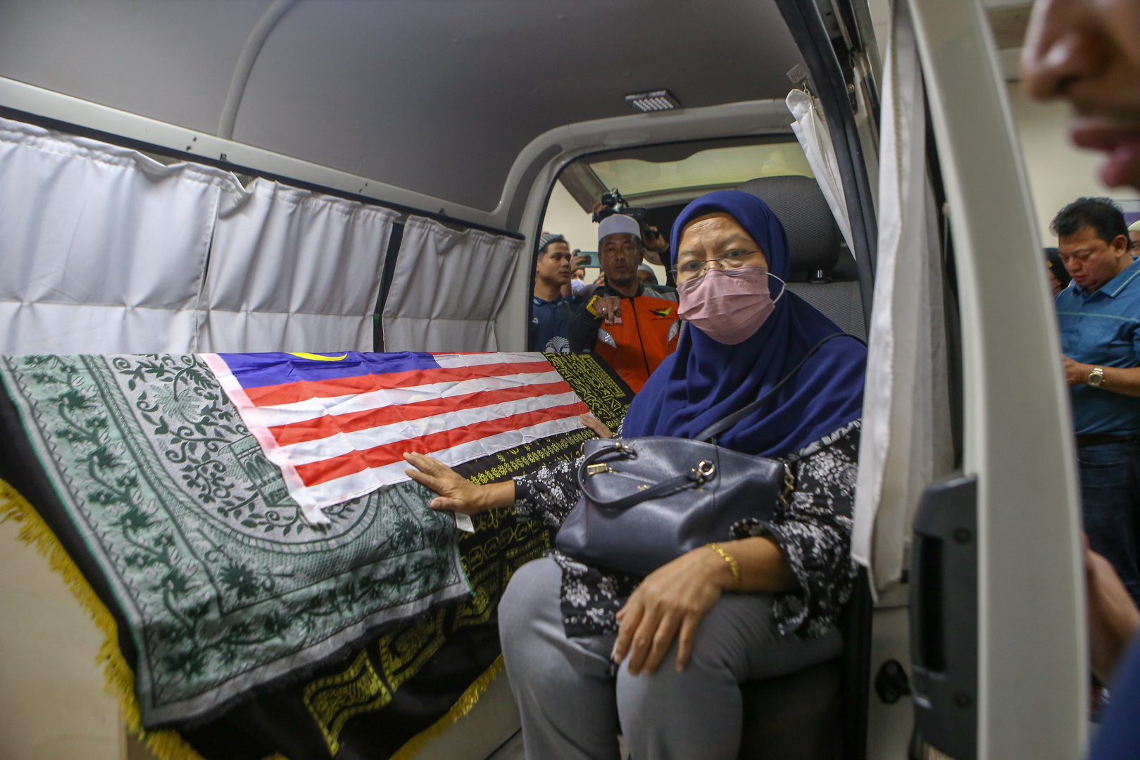 Selesai solat, van yang membawa jenazah Allahyarham seterusnya bergerak ke Lapangan Terbang Sultan Abdul Halim (LTSAH) dan jenazah akan diterbangkan ke Johor kira-kira pukul 1 pagi ini. –UTUSAN