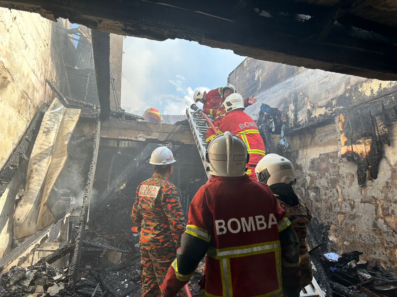 “Komander operasi melaporkan, kebakaran melibatkan lima buah rumah, dua tingkat jenis separuh kekal berkeluasan 30×20 untuk sebuah rumah.
