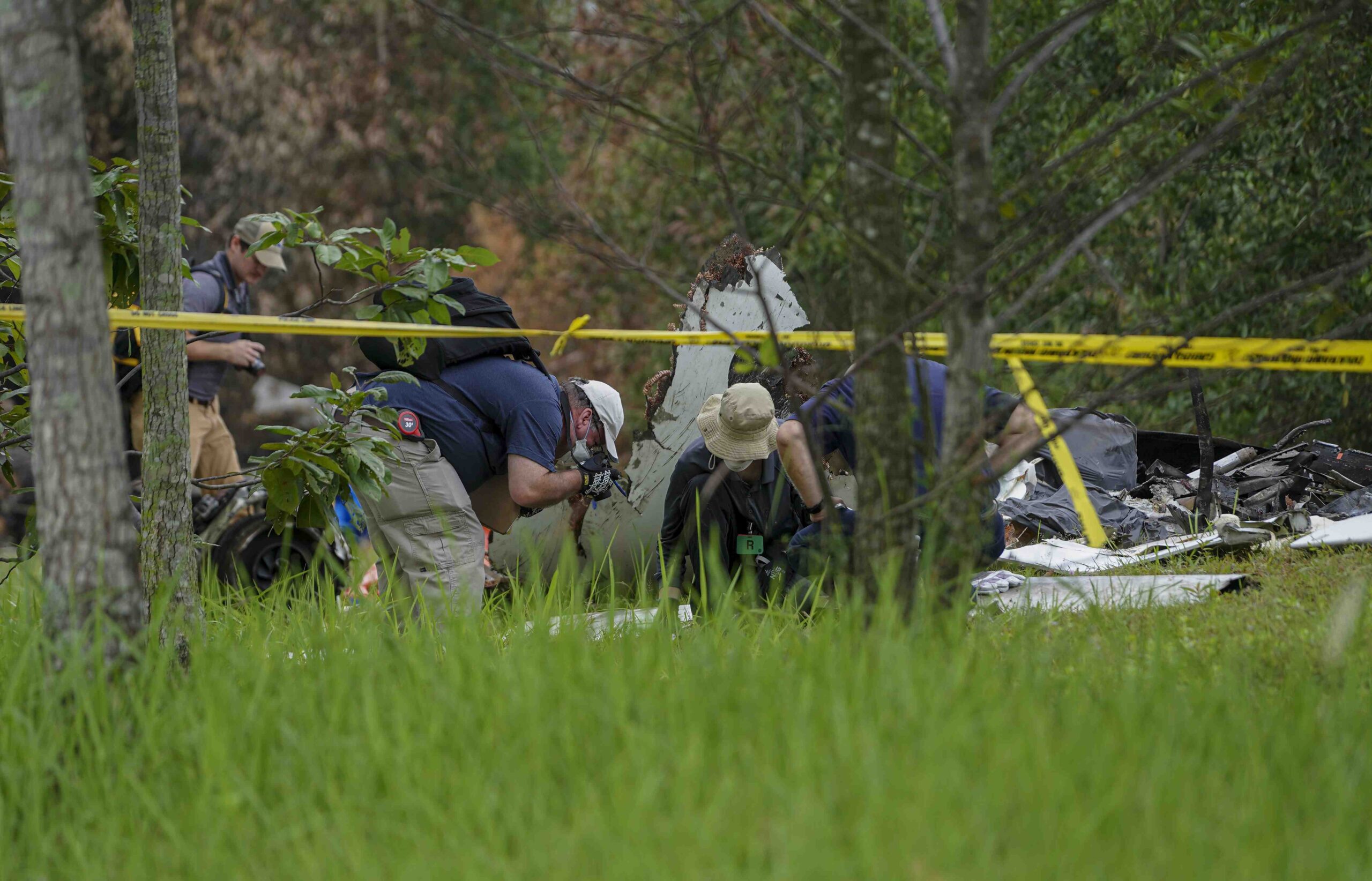 Dilihat, mereka sedang memeriksa beberapa cebisan objek, dipercayai milik pesawat Beechcraft 390 (Premier 1) dan memasukkan objek ke dalam bekas untuk dibawa ke makmal untuk siasatan.