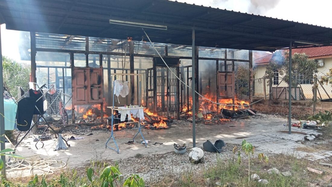 LUMUT: Seorang remaja Orang Kelainan Upaya (OKU) rentung apabila rumahnya terbakar dalam kejadian di Kampung Dato Seri Kamaruddin, Seri Manjung semalam.