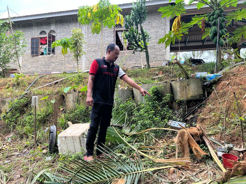 Dalam kejadian pada pukul 1 pagi itu, pokok pisang dan kelapa yang ditanam di tepi rumah penduduk musnah akibat dikerjakan seekor gajah liar jantan.
