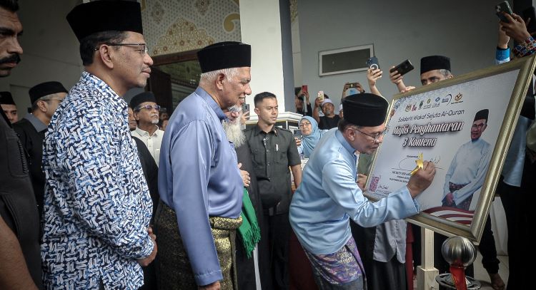 Terdahulu, Anwar melepaskan konvoi penghantaran tiga kontena al-Quran sempena Solidariti Wakaf Sejuta Naskhah Al-Quran yang berlangsung di Kompleks Nasyrul Quran, Presint 15, di sini.