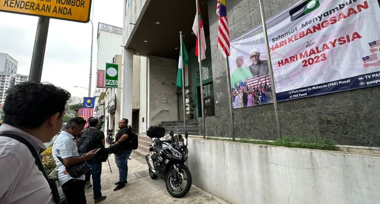 KUALA LUMPUR: Hampir 20 petugas media berkumpul di depan pintu Pejabat Pas Pusat, Jalan Raja Laut di sini susulan Presiden Pas, Tan Sri Abdul Hadi Awang yang dijangka diambil keterangan oleh pihak polis, pagi ini.