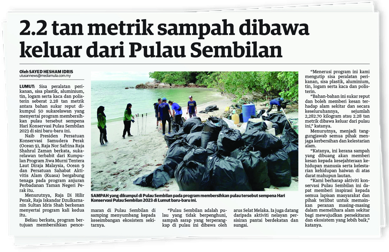 Beliau mengulas laporan akhbar ini kelmarin mengenai sisa peralatan perikanan, sisa plastik, aluminium, tin, logam serta kaca dan polisterin seberat 2.28 tan metrik antara bahan sukar reput dikumpul 50 sukarelawan dalam Hari Konservasi Pulau Sembilan 2023 di sini baru-baru ini.