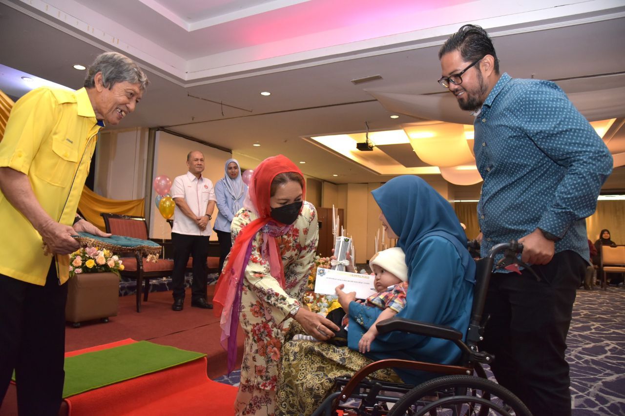 Tuanku Hajah Lailatul Shahreen berkenan untuk menyempurnakan pengurniakan sumbangan sebanyak RM41,800 kepada 34 orang bayi yang terpilih pada kali ini dan bantuan peralatan perubatan yang berupa cermin mata kepada dua orang pesakit dari HTF.