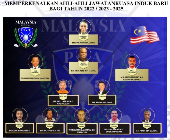 PETALING JAYA: Bakhtiar Mohd. Amin kekal sebagai Presiden Persatuan Profesional Golf Senior Malaysia (MSPGA) bagi tahun 2022/2023-2025.
