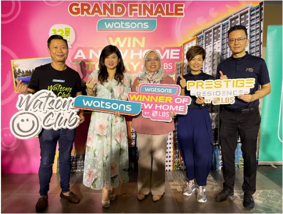 Hadir menyampaikan hadiah ialah Pengarah Eksekutif LBS Bina Group Berhad, Datuk Cynthia Lim; Timbalan Ketua Pegawai Eksekutif LBS, Lucas Lim; dan Pengurus Besar, Pemasaran dan Pertumbuhan Pelanggan Watsons Malaysia, Danny Hoh.