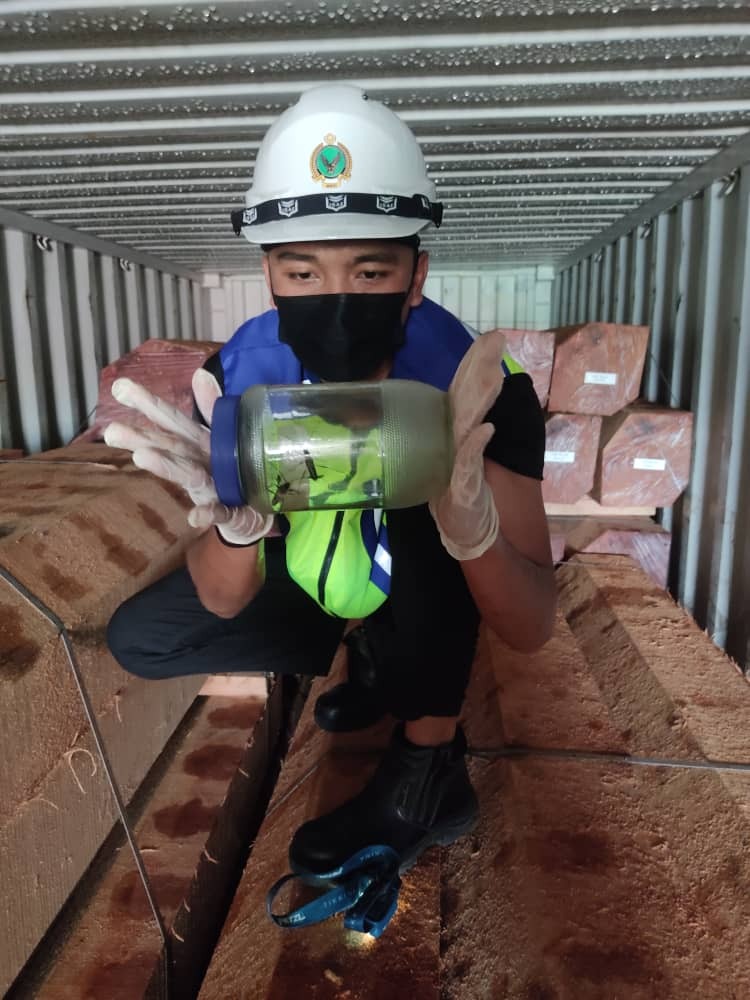 Mengulas lanjut, beliau berkata keputusan Analisa Penyaringan Perosak mendapati spesis ditemui adalah jenis Long-horned beetle (Chloridolum dorycum) yang merupakan spesis serangga perosak berisiko tinggi terhadap komoditi pertanian negara.