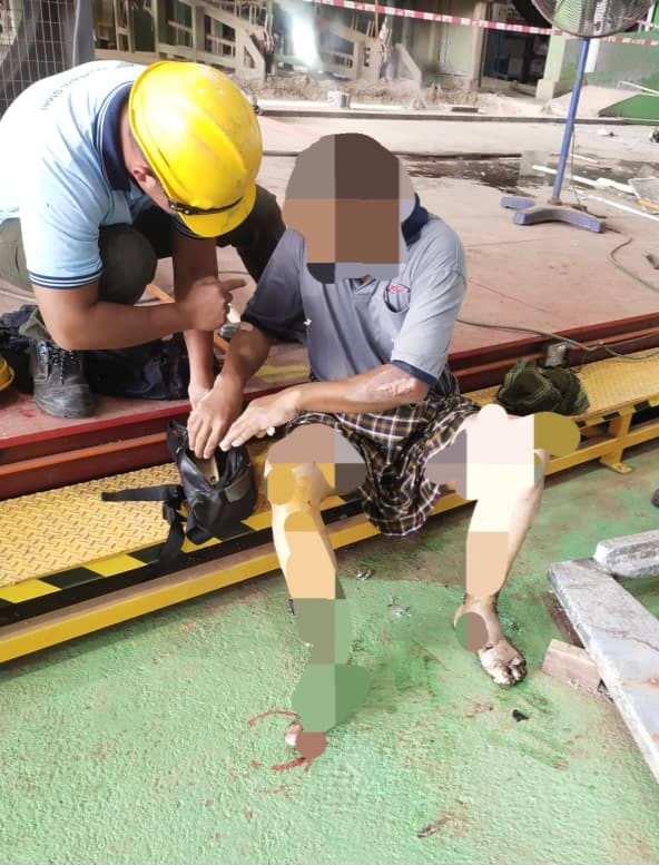 NIBONG TEBAL: Seorang pekerja penyelenggaraan yang juga vendor berdepan detik-detik mencemaskan selepas terjatuh ke dalam kawah zink bersuhu tinggi di sebuah kilang pembekal peralatan paip di Taman Perindustrian Nibong Tebal di sini, kira-kira pukul 10.58 pagi tadi.