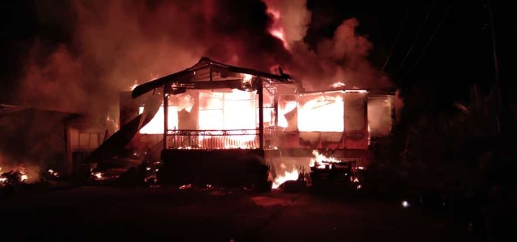 DARO: Sembilan penghuni berdepan detik cemas pada awal pagi tadi apabila rumah yang mereka duduki terbakar di Kampung Nanga Besar, di sini.