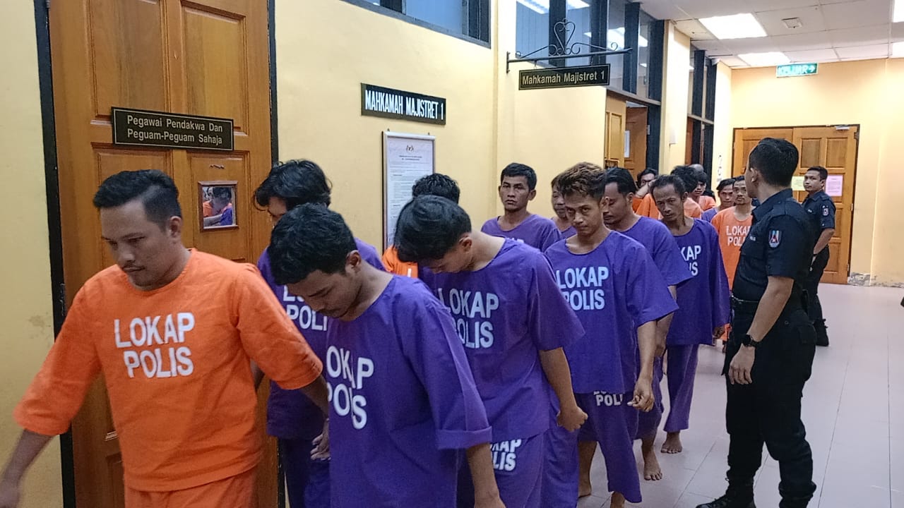 Kesalahan di bawah Seksyen 15(1) Akta Imigresen 1959/1963 itu dilakukan di kebun sawit, di Jalan Ban Pesisiran Laut Bagan Sungai Tiang, Selekoh pada pukul 6.30 pagi, 28 Disember 2023.