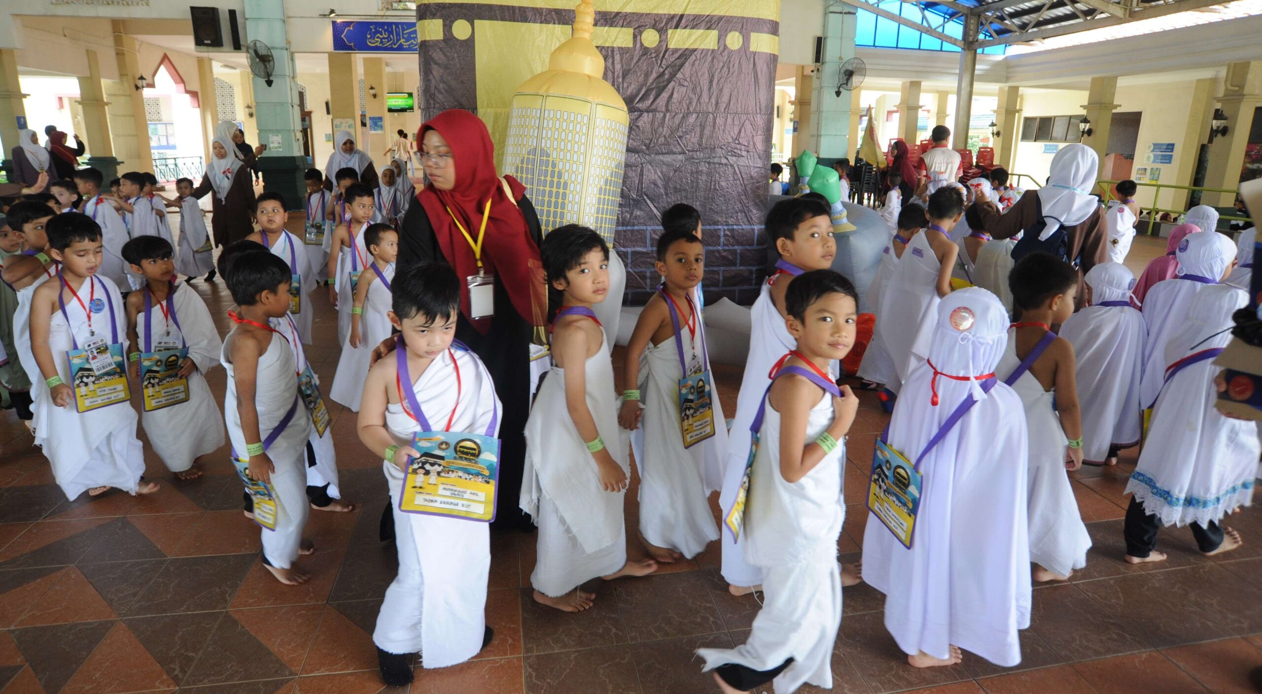 Laungan Labbaikallah Humma Labbaik memecah keheningan pagi di Masjid Al Jawaher, Taman Mutiara Rini Johor Bahru apabila murid muirid tadika yang dipilih mengerjakan ‘haji’ baru-baru ini.