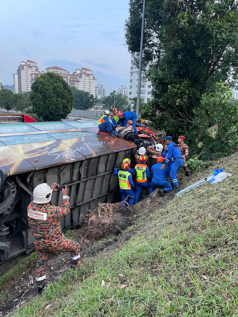 KUALA LUMPUR: Enam orang termasuk seorang pemandu bas bernasib baik kerana terselamat dalam kemalangan berhampiran Plaza Tol Jalan Duta, Lebuh Raya Utara- Selatan (PLUS) menghala ibu negara, hari ini. Kejadian berlaku kira-kira pukul 6.15 pagi ketika bas tersebut dalam perjalanan ke ibu negara terbabas sendiri. Ketua Jabatan Siasatan Dan Penguatkuasaan Trafik Kuala Lumpur, Asisten Komisioner Sarifudin Mohd. Salleh berkata, bas tersebut yang berada di lorong tengah dikatakan hilang kawalan lalu…