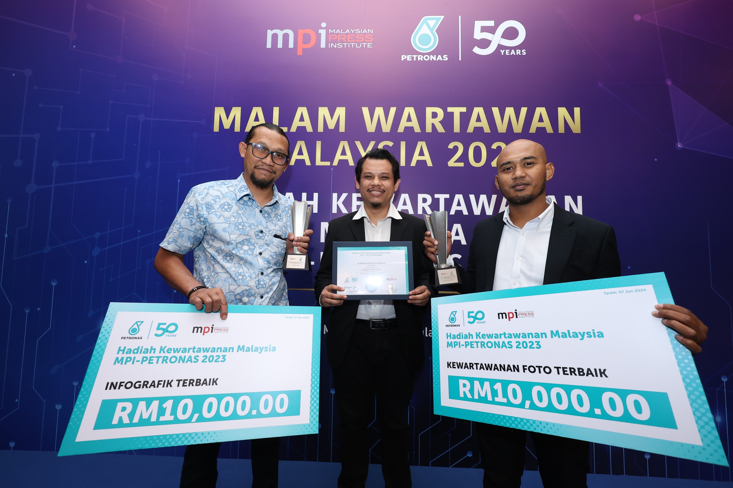 KUALA LUMPUR: Media Mulia berjaya menggondol tiga kategori Hadiah Kewartawanan Malaysia (HKM) MPI-Petronas 2022 yang berlangsung di Hotel Majestic di sini, malam ini. Penolong Ketua Kreatif Utusan Malaysia, Mohamad Sany Misnan dinobatkan Pemenang Emas bagi kategori Infografik Terbaik menerusi karya bertajuk ‘Potensi Sungai Batu Pahat’ yang membawa pulang wang tunai RM10,000 beserta sijil dan trofi. Jurufoto Utusan Malaysia, Shiddieqiin Zon pula dinobatkan sebagai Pemenang Emas bagi Kategori Kewartawanan Foto Cemerlang…