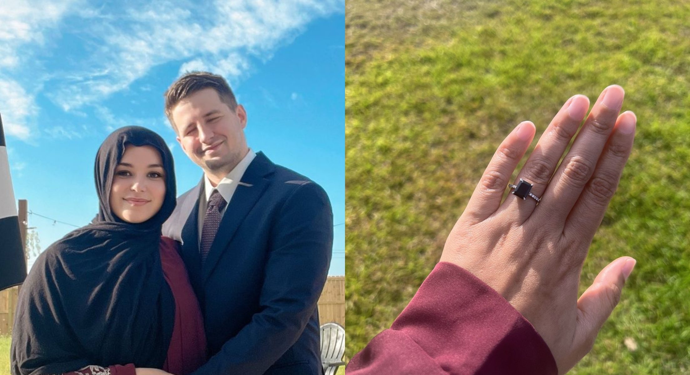 Menerusi gambar tersebut Sarah dilihat mengenakan hijab selain menunjukkan cincin pernikahan.