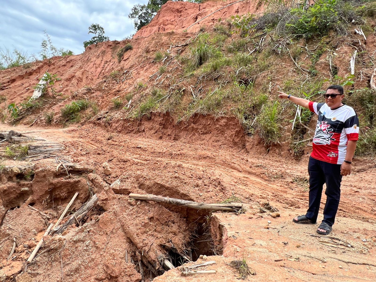 Dakwa penduduk, jalan utama yang menjadi laluan keluar dan masuk ke kawasan penempatan mereka mengalami kerosakan teruk dan berlaku hakisan tanah yang boleh membahayakan nyawa pengguna yang melalui laluan itu.