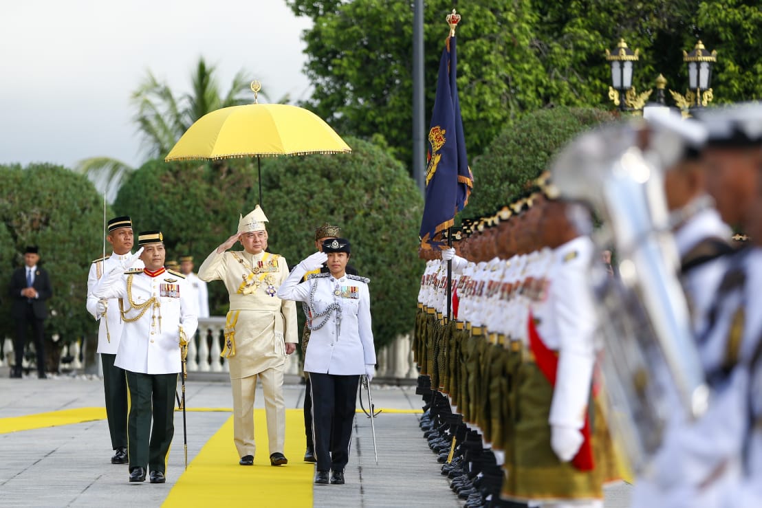 KUALA KANGSAR: Sultan Perak, Sultan Nazrin Muizzuddin Shah pagi ini berkenan memeriksa kawalan kehormatan sempena istiadat Ulang Tahun Hari Keputeraan baginda ke-68 di Istana Iskandariah di sini.