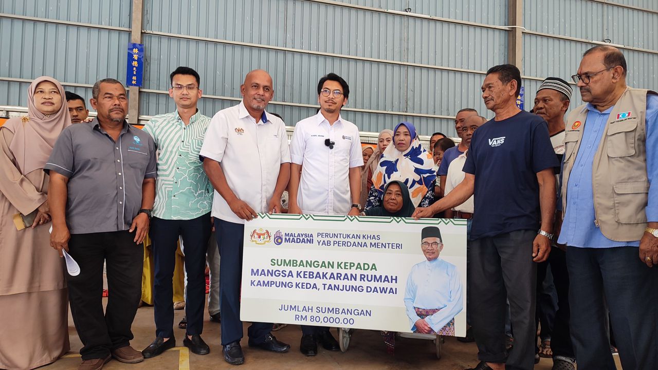 SUNGAI PETANI: Seramai 16 keluarga yang terjejas akibat kebakaran rumah di Tanjung Dawai, di sini, Ahad minggu lalu menerima bantuan khas Perdana Menteri, Datuk Seri Anwar ibrahim berjumlah RM80,000.