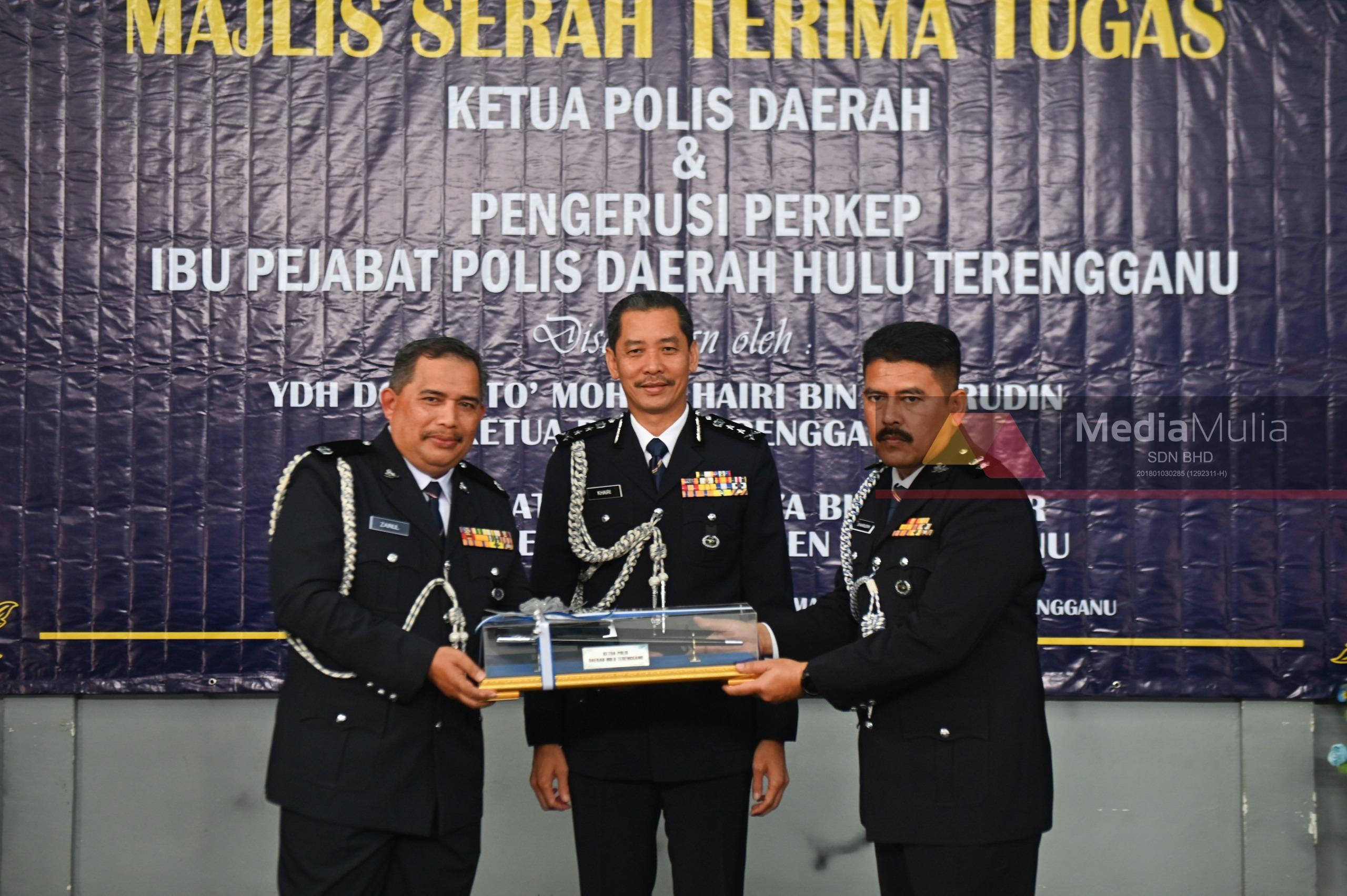 Superintenden Sharudin Abdul Wahab dilantik sebagai Ketua Polis Daerah Hulu Terengganu menggantikan Deputi Superintenden Zainul Mujahidin Mat Yudin yang bertukar ke Ibu pejabat Polis Kontinjen Terengganu. – UTUSAN