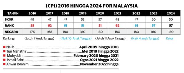 PETALING JAYA: Usaha-usaha reformasi dalam institusi lambat dan peningkatan kes lepas tanpa dibebaskan (DNAA) antara punca skor diperoleh negara dalam Indeks Persepsi Rasuah (CPI) 2024 kekal 50 mata seperti 2023. Presiden Transparency International Malaysia (TI-M), Dr. Muhammad Mohan berkata, kerajaan masih kurang melakukan reformasi institusi walaupun memberi penekanan terhadap tatakelola baik dan reformasi. Katanya, kegagalan seperti pembentangan rang undang-undang pembiayaan politik, perolehan awam, kebebasan maklumat termasuk pengasingan peranan peguam negara…