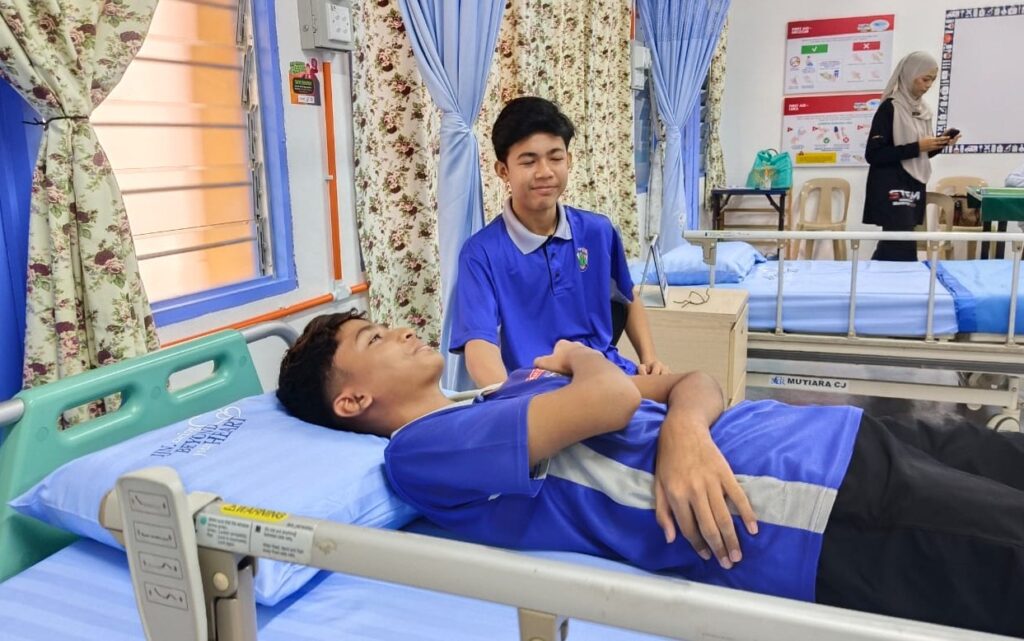 KANGAR: Suasana di bilik rawatan di Sekolah Menengah Kebangsaan (SMK) Derma seperti berada di wad hospital sebenar dengan kelengkapan katil yang selesa dan persekitaran menarik yang dihiasi mural berkaitan profesion kesihatan.