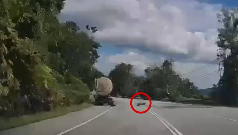 Menerusi video tular dari rakaman kamera papan pemuka sebuah kenderaan itu memaparkan sebuah lori berhenti di tepi jalan dan kelihatan seekor haiwan berwarna hitam menyerang seorang lelaki.