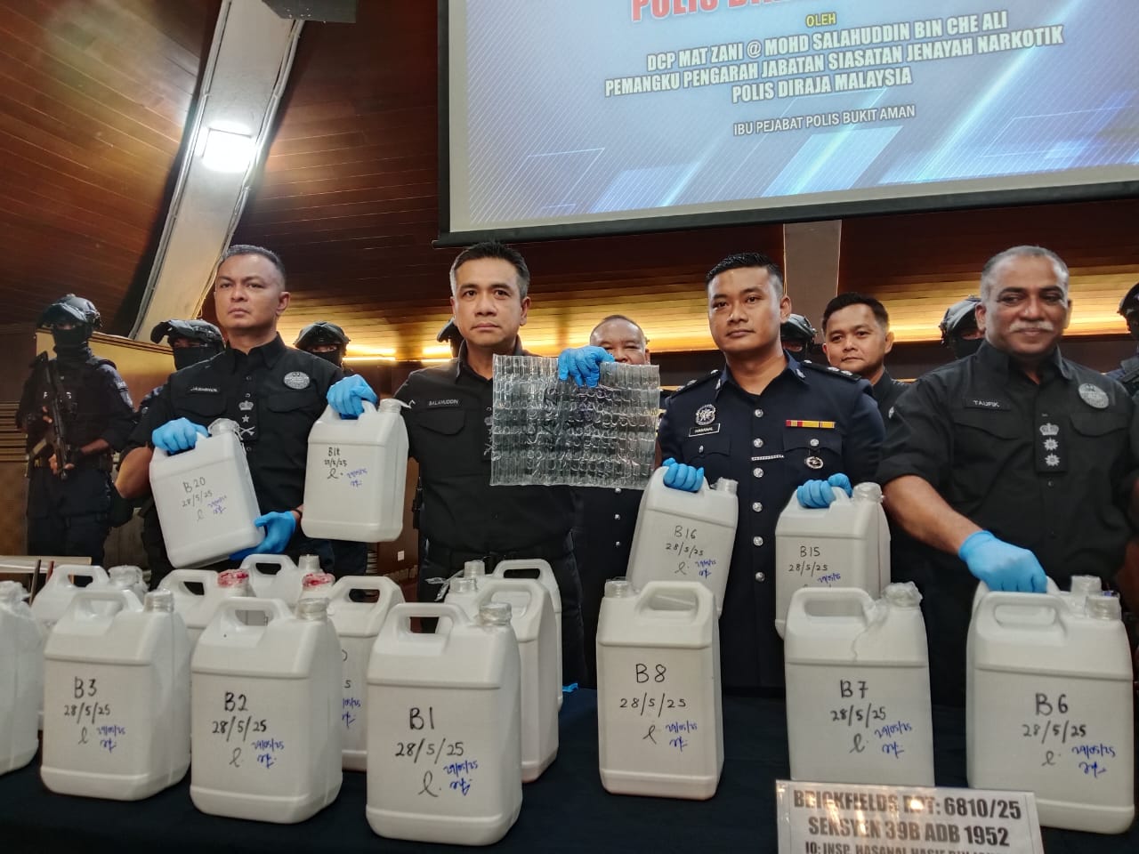 Pengarah JSJN Bukit Aman, Deputi Komisioner Mat Zani @ Mohd Salahuddin Che Ali berkata, dalam serbuan tersebut, pihaknya menahan dua lelaki warga Taiwan berusia antara 30 dan 35 tahun dipercayai berperanan sebagai ahli kimia dan penjaga stor.