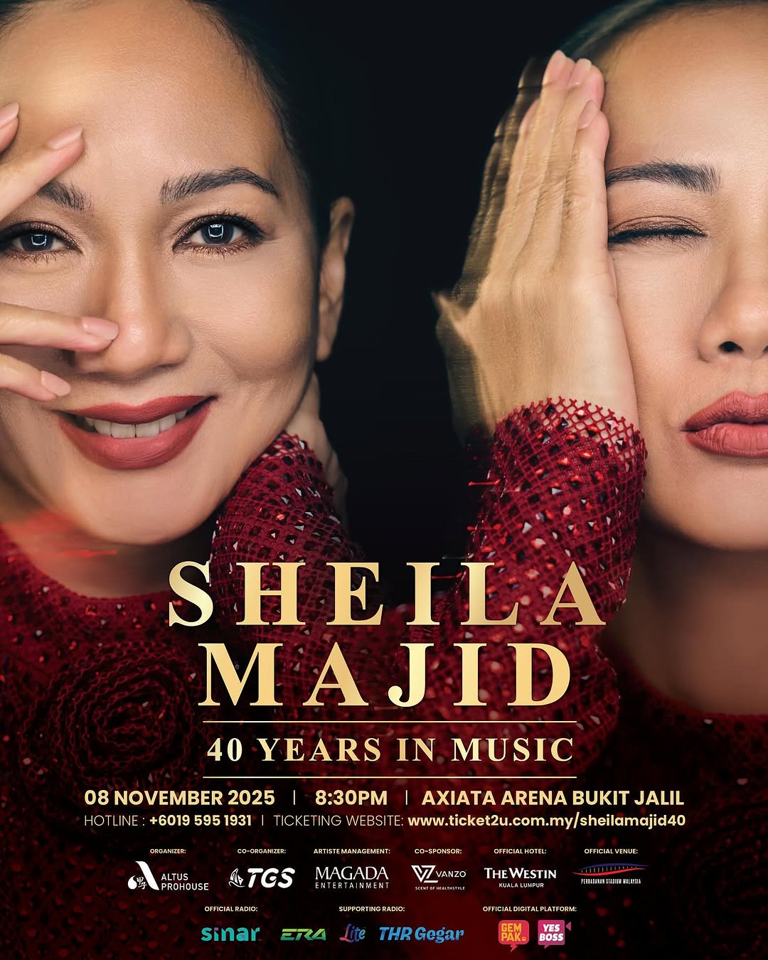Tiket berharga antara RM268 hingga RM3400 akan dijual bermula 17 Julai, pukul 10 pagi. Tempahan dibuat menerusi platform www.ticket2u.com.my/sheilamajid40.- UTUSAN