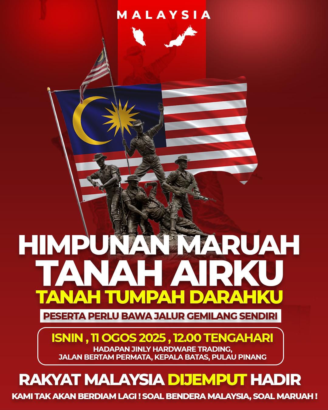 PETALING JAYA: Penganjuran ‘Himpunan Maruah Tanah Airku’ bagi membantah pemilik premis yang mempamerkan Jalur Gemilang secara terbalik dibatalkan. Sekretariat Pemuda UMNO dalam satu kenyataan berkata, keputusan itu dibuat atas sebab-sebab yang tidak dapat dielakkan. “Pihak Pemuda UMNO Malaysia memohon maaf atas sebarang kesulitan yang timbul dan mengucapkan terima kasih atas sokongan semua pihak, khususnya rakan-rakan media,” katanya hari ini. Semalam, Ketua Pemuda UMNO Datuk Dr. Muhammad Akmal Saleh menangguhkan ‘kelas…