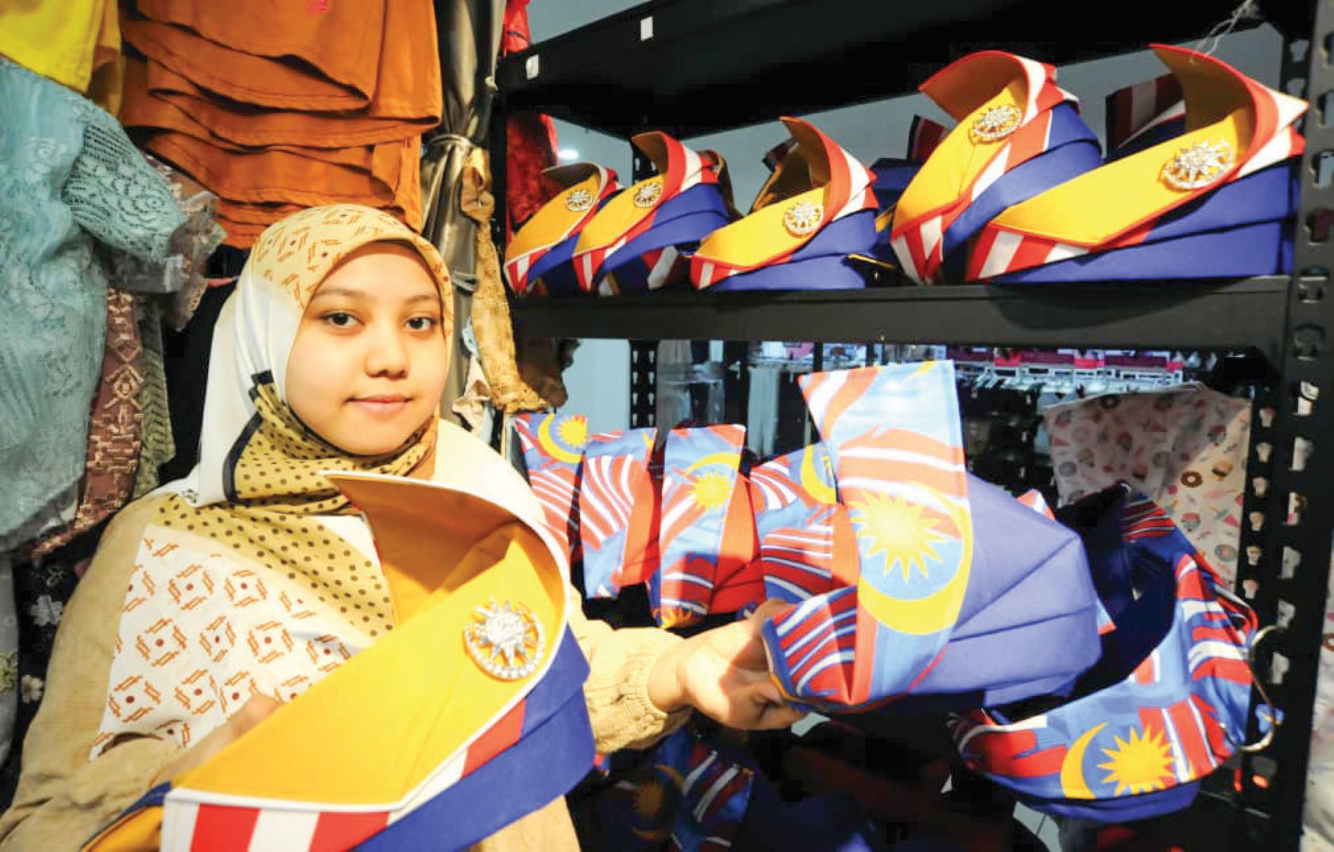 JOHOR BAHRU: Sambutan Hari Kebangsaan sentiasa memberi rezeki berganda buat seorang jurujual muda, Iman Nabihah Shahril, 20, apabila jualan barangan berunsur patriotik di kiosk Nunuhouse miliknya habis terjual setiap kali tibanya 31 Ogos. Bertempat di Kompleks Pusat Bandar Pasir Gudang, kiosk yang beroperasi setiap hari, sempena sambutan Merdeka mampu mencatat jualan lebih 100 unit pelbagai barangan dengan sambutan yang luar biasa. “Alhamdulillah, setiap tahun pelanggan memang menunggu. “Boleh dikatakan semuanya…