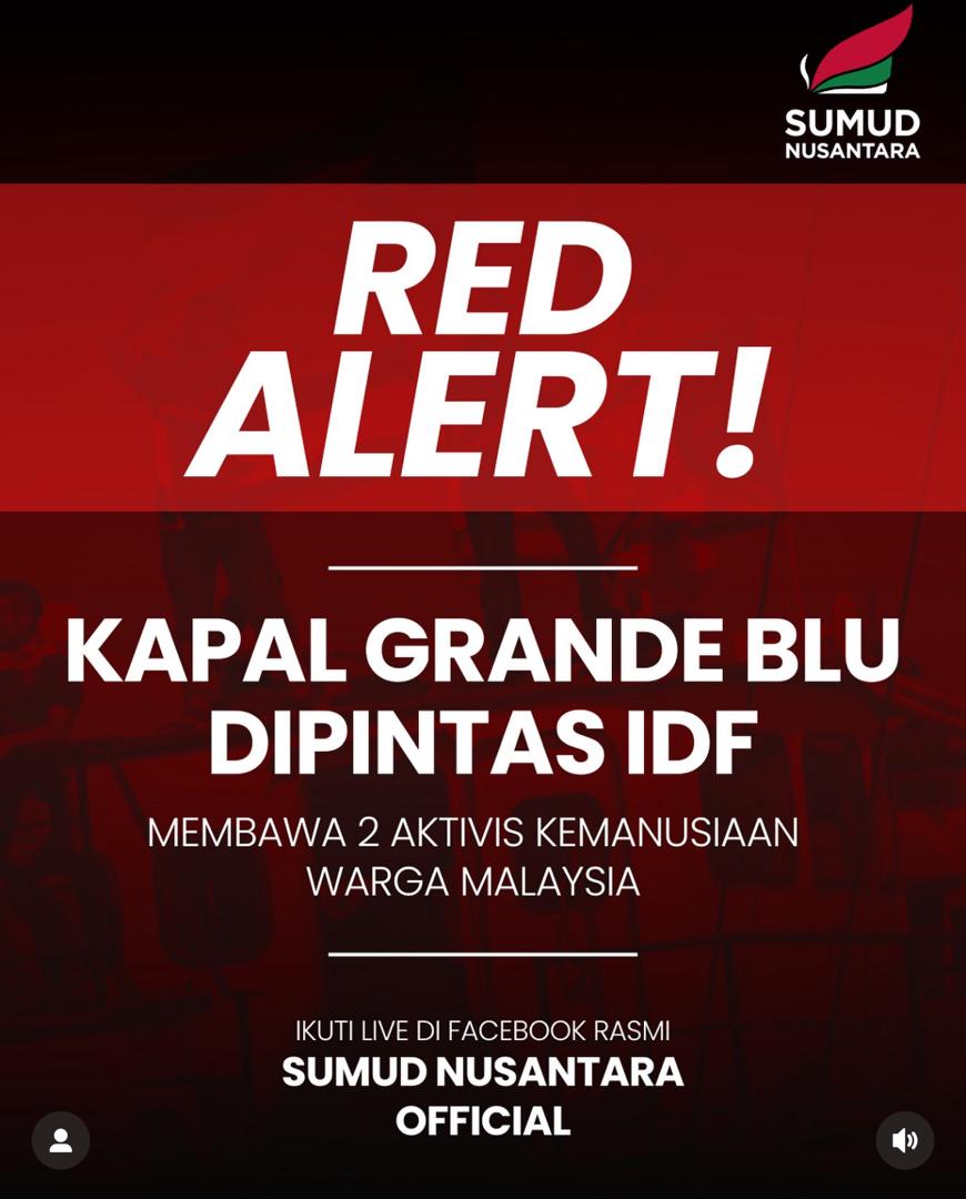 SEPANG: Salah sebuah kapal delegasi Global Sumud Flotilla (GSF) iaitu Kapal Grande Blu telah dipintas oleh rejim zionis di perairan antarabangsa pada pukul 12.58 pagi waktu Gaza.