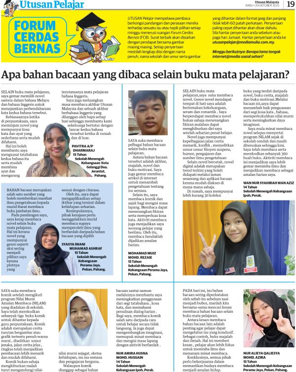 Rata-rata mereka setuju supaya perbanyakkan bahan bacaan yang dihadapi setiap hari sebagai seorang pelajar. – UTUSAN