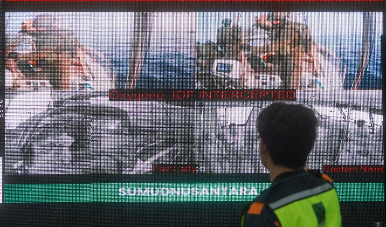 Anggota tentera Zionis itu dilihat menaiki kapal berkenaan sebelum menahan peserta misi Global Sumud Flotilla (GSF) yang berada di atas kapal berkenaan.