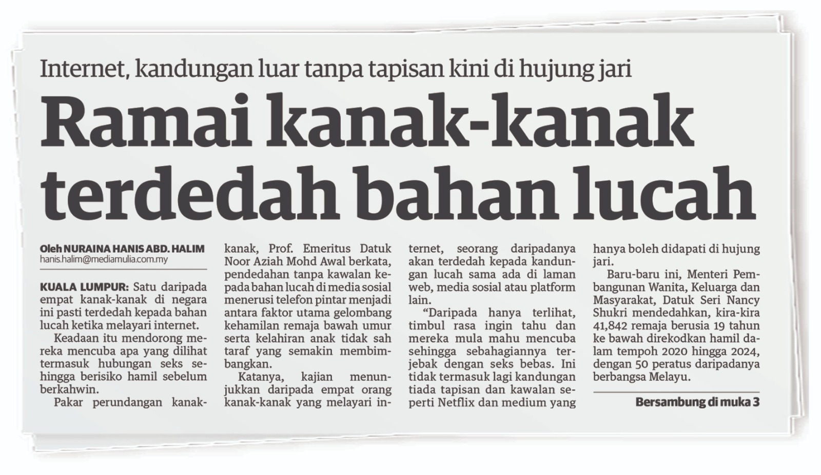 PETALING JAYA: Larangan penggunaan media sosial terhadap kanak-kanak bawah 16 tahun tidak dapat menjamin keselamatan digital sepenuhnya bagi menghalang sebarang kandungan lucah atau berbahaya daripada kanak-kanak. Ketua Pesuruhjaya Kanak-Kanak Suruhanjaya Hak Asasi Manusia Malaysia (Suhakam), Dr. Farah Nini Dusuki berkata, fokus kerajaan seharusnya lebih tertumpu kepada membina ketahanan digital berbanding kenakan larangan yang semata-mata tidak memadai dalam memastikan keselamatan kanak-kanak di ruang siber. Katanya, tanpa kemahiran melayari internet dengan selamat,…
