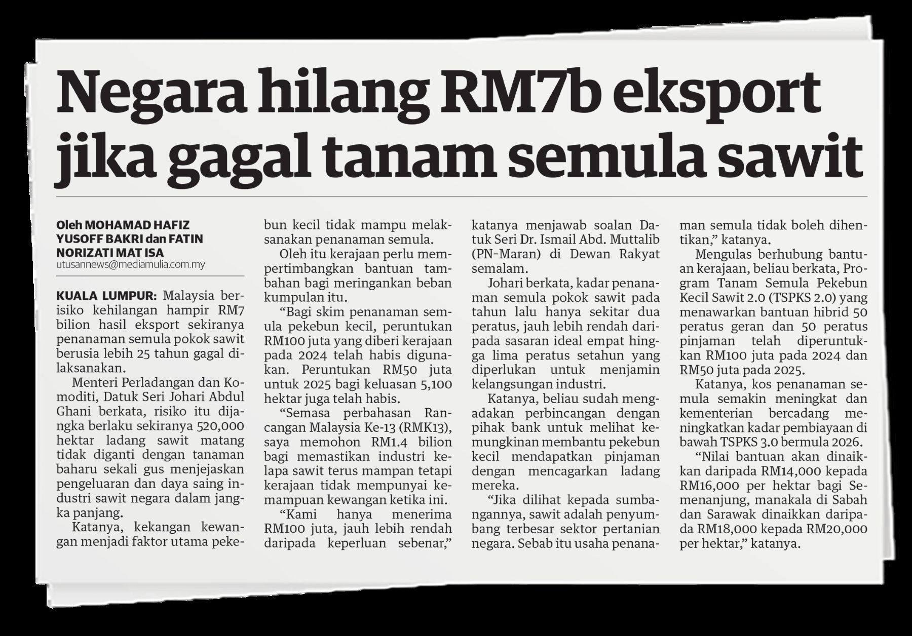 PETALING JAYA: Pekebun dan peladang di negara ini perlu dilibatkan dalam aktiviti nilai tambah bagi membantu mereka mencipta peluang dan keuntungan sekali gus menggalakkan penanaman semula pokok sawit. Penyelidik di Institut Pertanian Tropika dan Keselamatan Makanan (ITAFoS) Universiti Putra Malaysia (UPM), Profesor Datin Dr. Fatimah Mohamed Arshad berkata, kegagalan penanaman semula pokok sawit berpunca dari kurangnya peminat dari pekebun dan peladang. Menurut beliau, pekebun dan peladang merasakan harga pulangan dengan…