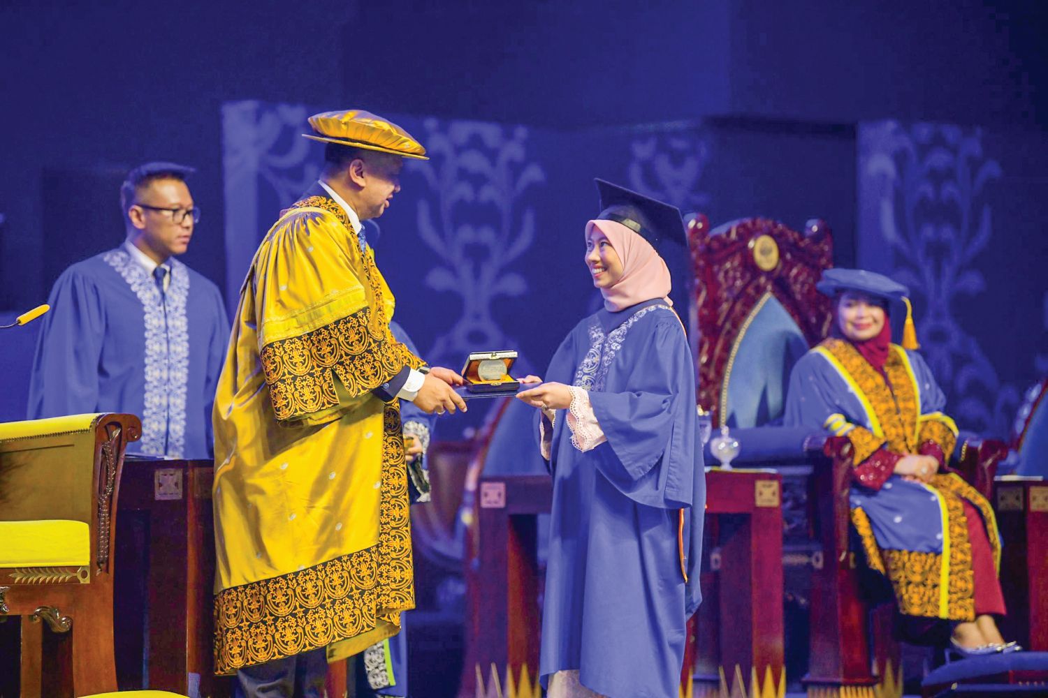 ARAU: Pelajar Ijazah Sarjana Muda Kejuruteraan Elektrik, Nik Nuraina Fadhilah Nik Muhammad Nasir, 24, dinobatkan penerima Anugerah Pelajaran Diraja sempena Istiadat Konvokesyen Universiti Malaysia Perlis (Unimap) Ke-20, di sini, semalam. Anugerah berprestij itu disampaikan oleh Raja Muda Perlis merangkap Canselor Unimap, Tuanku Syed Faizuddin Putra Jamalullail, sebagai pengiktirafan terhadap kecemerlangan akademik Nik Nuraina serta sumbangan aktif beliau dalam aktiviti kokurikulum sepanjang pengajian. Bagi penganugerahan itu, Nik Nuraina menerima pingat bersadur…