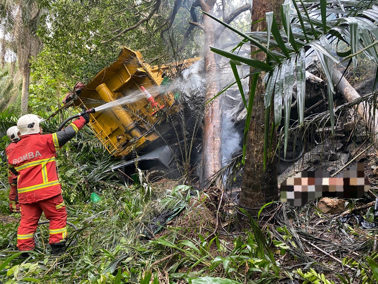 KOTA TINGGI: Seorang pemandu lori, R. Sasitharan, 38, rentung selepas kenderaan dipandunya terbakar dalam kemalangan di Kilometer 26, Jalan Lok Heng-Mawai di sini, petang semalam. Ketua Polis Daerah Kota Tinggi, Superintenden Yusof Othman berkata, pihaknya menerima maklumat mengenai kemalangan itu pada pukul 4.35 petang. “Kemalangan melibatkan sebuah lori Volvo yang dipercayai terbabas sendiri sebelum terjunam ke dalam gaung dan terbakar. “Mangsa mengalami kecederaan parah akibat kebakaran melibatkan keseluruhan badan dan…